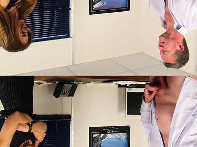 Assistant Sucks Doggy Style in Front of Mirror in Nylon Stockings and Heels