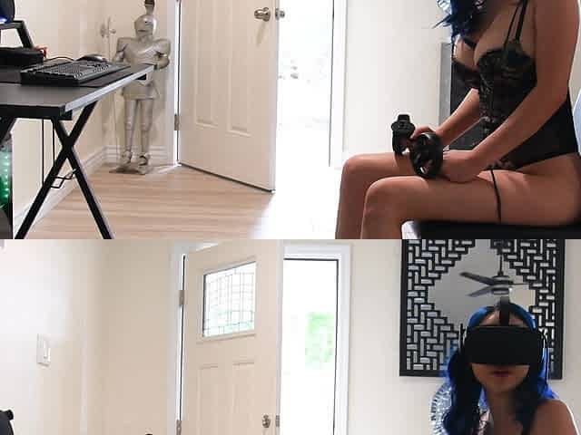 Homemade video of kinky Eve watching VR and teasing on the chair