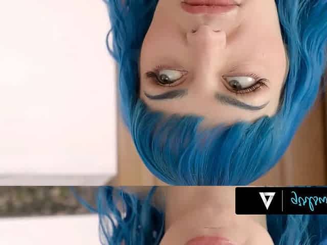 Hot wife Ninaandevan grinds and teases in a blue skirt for a deep cumshot