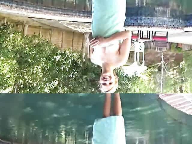 Passionate couple fucks doggy style after playing in the pool