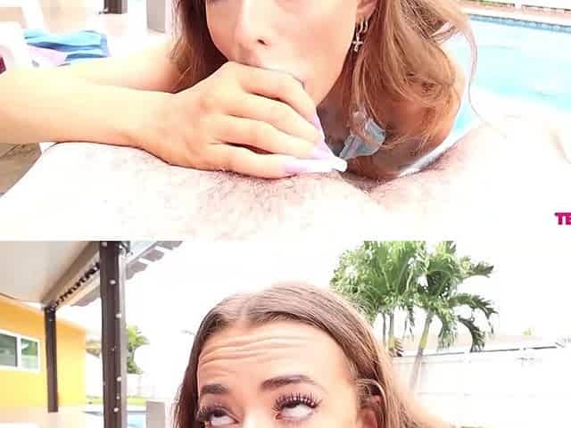 Nasty in Ibiza: Teaser POV clip of this amateur anal doxy being screwed in the booty by the poolboy.