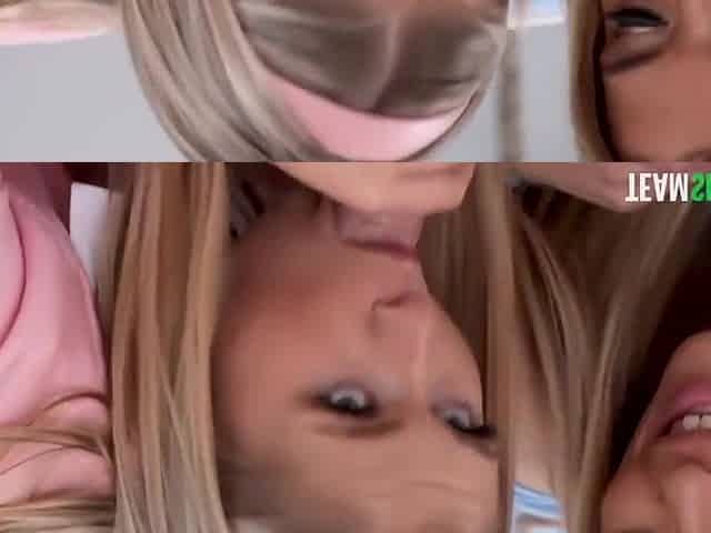 Virgin Nerd Teen with glasses and her Step-Sister First Time Lesbian Sex with Huge Dildo Strap On