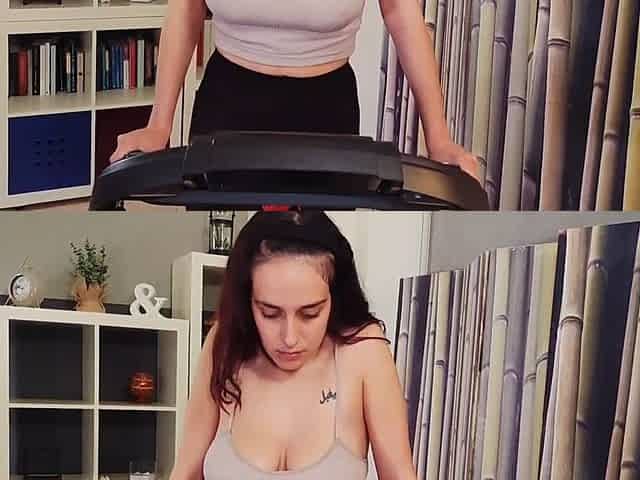 Big Tits Wiggle on a Treadmill Increasing Speed Leggings Gym