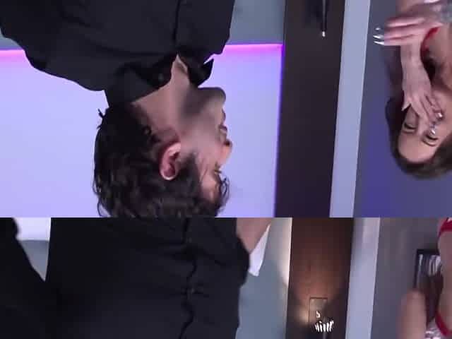 An awesome sideways pose fuck with a white model Bambi Barton