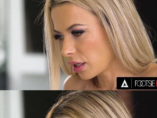 An office sex romp with leggy blonde bitch Alexis Crystal