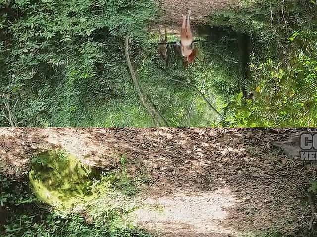 Smart guy lures bimbo cheerleader into quick sex in backyard