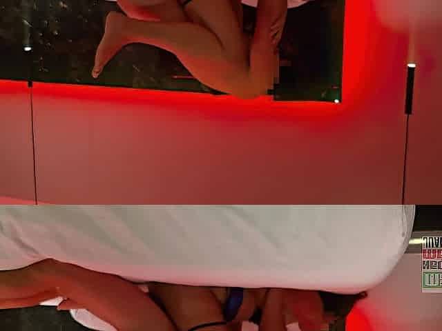 3some amateur con dos latinas en lancería azul, enseñandolas a compartir una verga 5