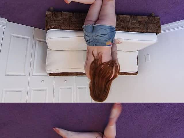 Redhead cutie Amber Addis drills her wet pussy on the floor