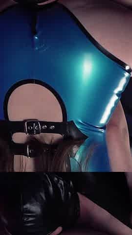 Blonde hot teen sucks strapon and gets fucked by her lesbian friend with it