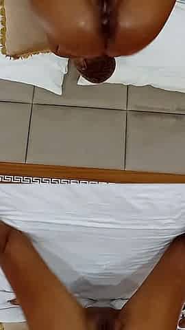 Huge Anal Plug in Perfect Ass. Fingering Pink Pussy