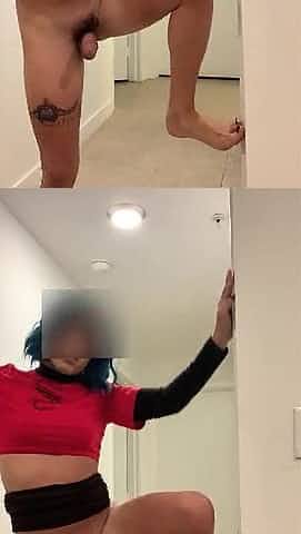 Lewd teen sissy showing off constricted cute butt