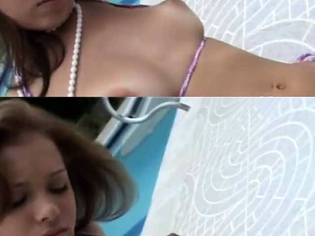 Poolside solo teen babe