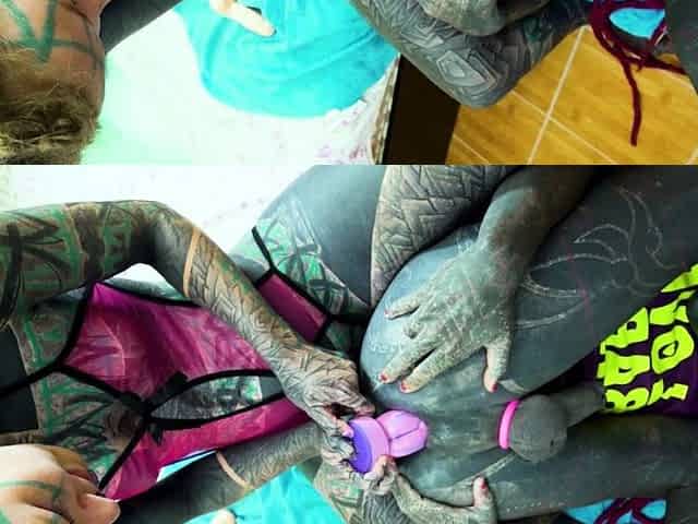 Tattooed teen double screwed