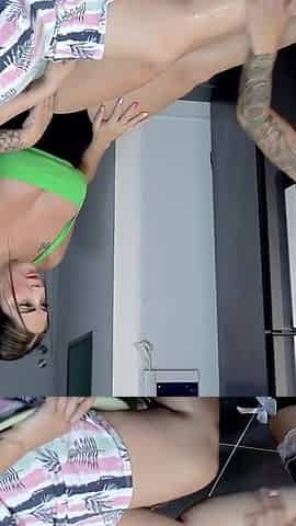 Romantic first-time couple's erotic massage with a curvy Latina Milf Muceas