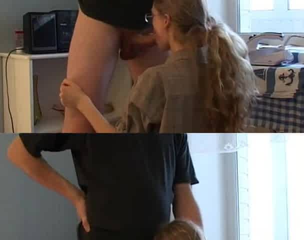 The cleaning lady (stepdaughter) gives incredible blowjob-sex