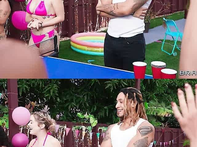 Hardcore Threesome with a Good BBC at Dusk by the Pool