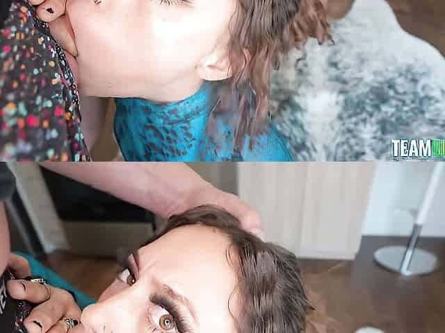 Beautiful brown-haired Laya Rae is sucking a big dick on the knees