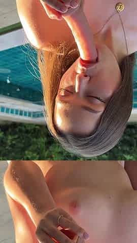 Juicy Brunette with a Big Ass Fucks Herself with a Big Dildo by the Pool