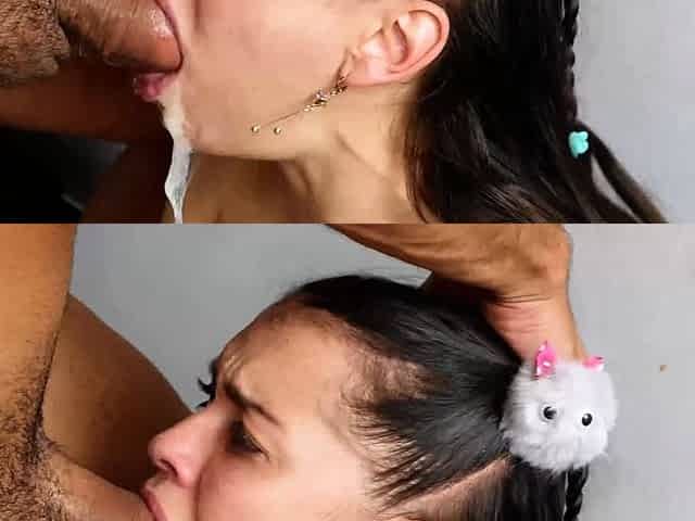 Big Cock Blowjob Leaves Teen GF with a Mouthful of Cum