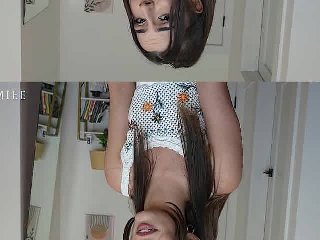 Small titted teen sucks upside down