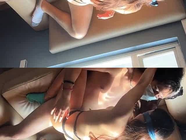 Booty Latina stepsister rides my BBC on a sofa