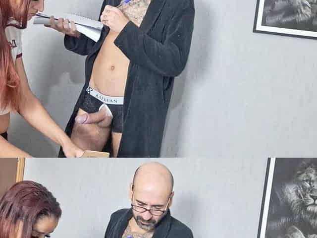 Hot chick rubs and sucks 2 hard ramrods to a bazookas ejaculation