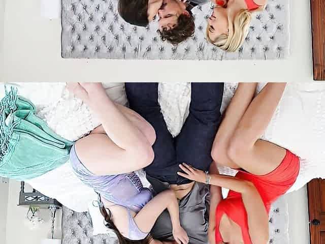 Aria Valencia and Madi Collins fuck with a horny shared lover