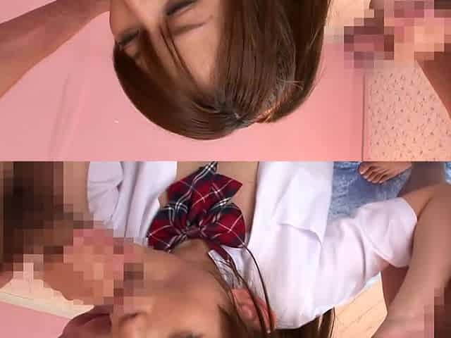 Watch this petite Japanese schoolgirl get double-stuffed in steamy threesome action