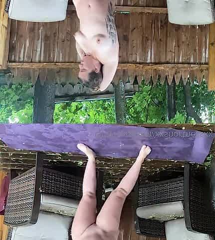 Doing risky outdoor undressed yoga relaxing rain storm ASMR