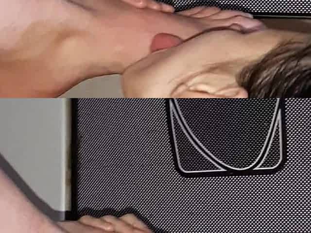 Teen gets foot fucked and receives a cum blast