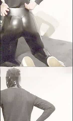 Latex girl Lillylovesleather gets steamy with a fake dick while wearing leather leggings
