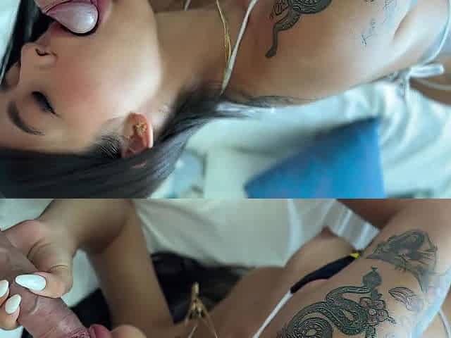 Aliya Swallows Your Cock And Rubs One Out With Her Feet