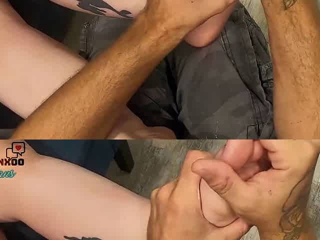 Skinny Teen Couple Rubs Him Off While She Is On The Pho