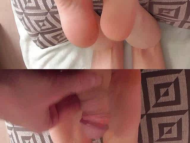 Hot teen gives a footjob to her dude and gets a warm load in POV