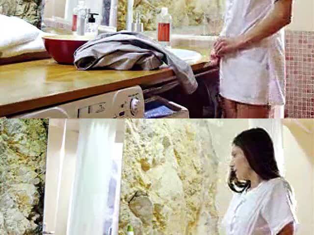 Sexy Blonde Wetting Herself In Black Onesie - Messy