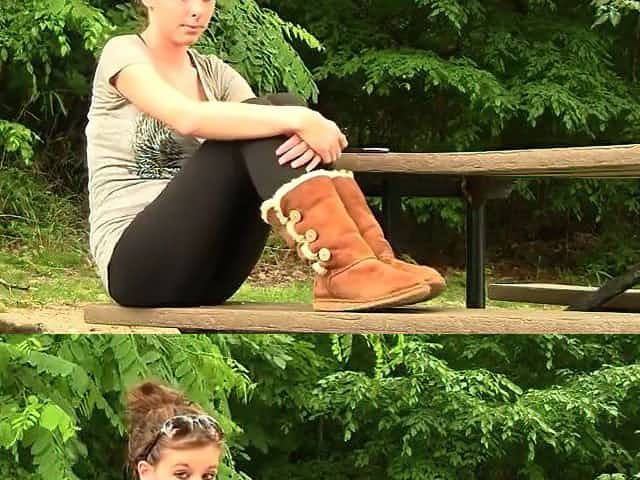 Hot babe esmi lee gets feet worshiped and licked outside!