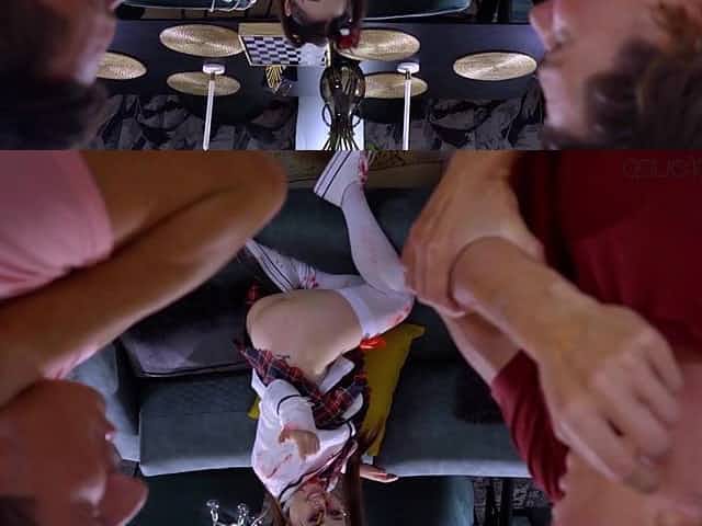 Enjoy Halloween gangbang fantasy with zombie teen girl!