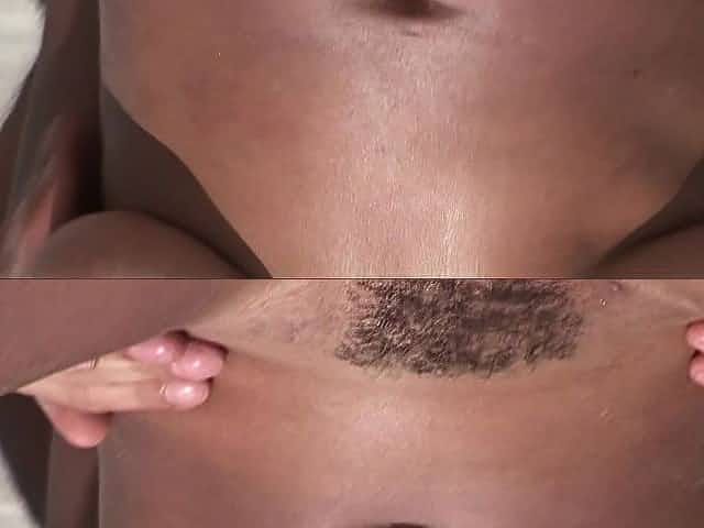 Exciting black babe Dena Caly has two white dudes sharing her pink twat