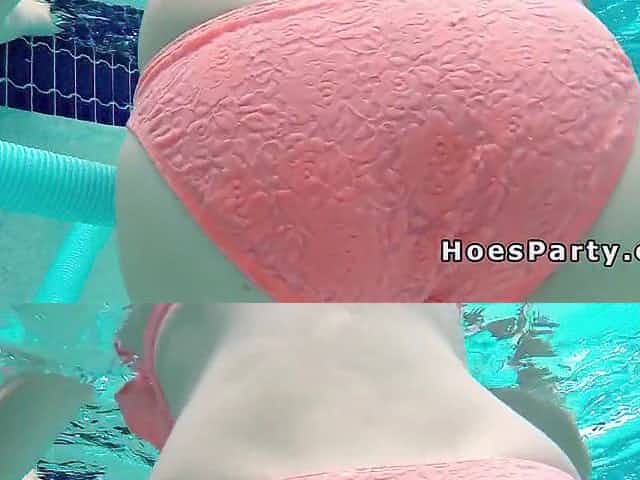 Two perky boobs babes banged by the pool