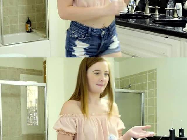 Asian stepsister Kimmy Kimm in a stepsiblings threesome with Amber Summer