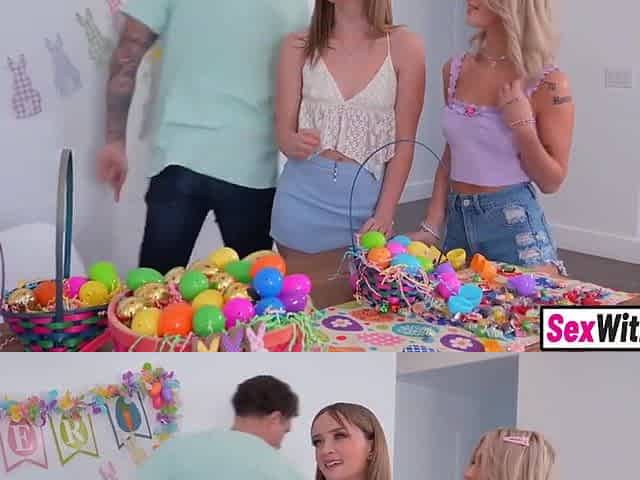 Teen 18+ Stepsis Surprises Big Cock Stepbro With Threesome On Easter