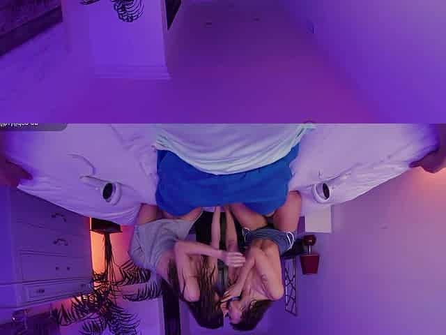VR Bangers: Two Sexy Skinny Babes Kiss And Fuck You In Your Bedroom In A Hot FFM 3Some