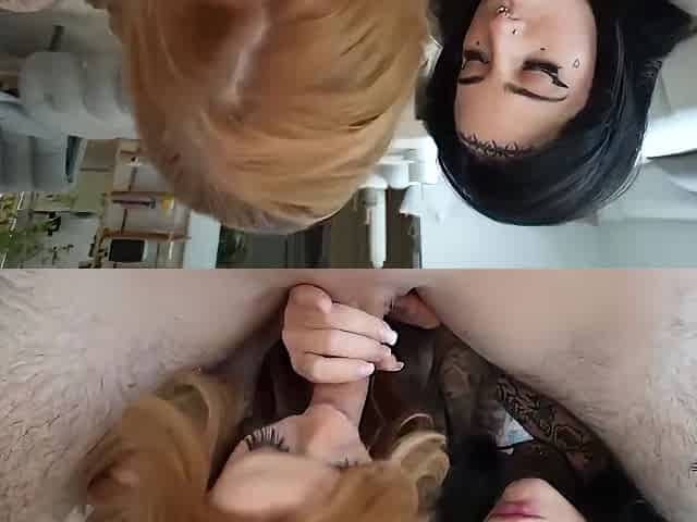 Slutty Schoolgirls Are Taking Turns Sucking A Throbbing Cock While Having A Threesome With A Friend
