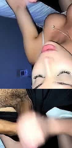 Amateur Beauty Facialized After Striptease Handjob