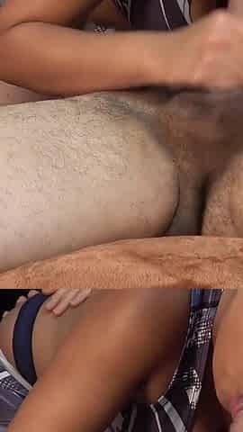 Cock sucking, spunk in mouth, and torrid cum flows over fat