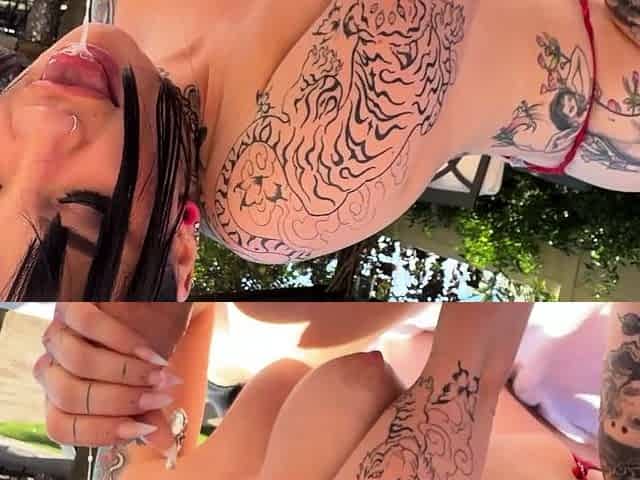Outdoor poolside blowjob under the sun for the innocent hotwife and her hubby