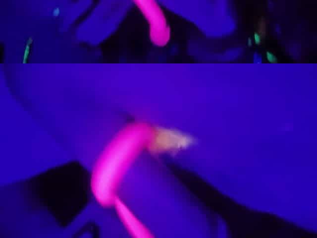 Blacklight Goth Girl with Neon Hair Edges Big Dick with Crazy Massage Gun Toy Gets Huge Cumshot
