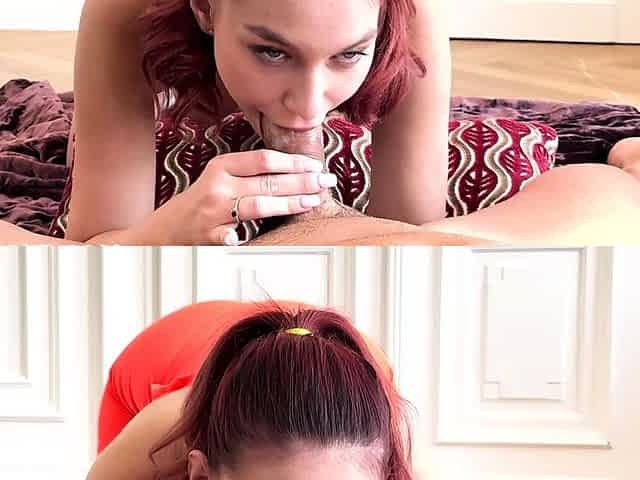 Red nails breasty cutie closeup hand job and oral pleasure for cum