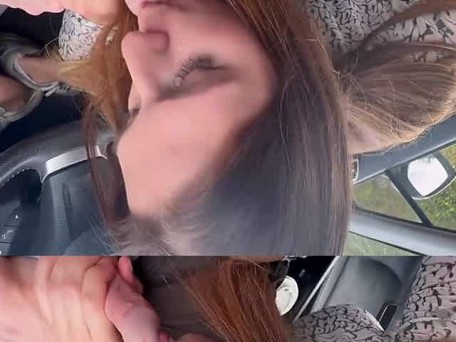 Sexy Asian gal gives blowjob while driving - super-naughty