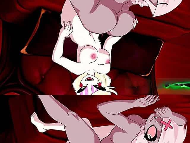 Charlie and Vaggie futanari let loose their desires on the sofa